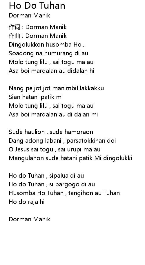 | Husomba Ho Tuhan , tangihon au Tuhan | |