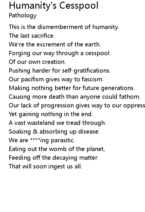 Eating out the womb of the planet, |