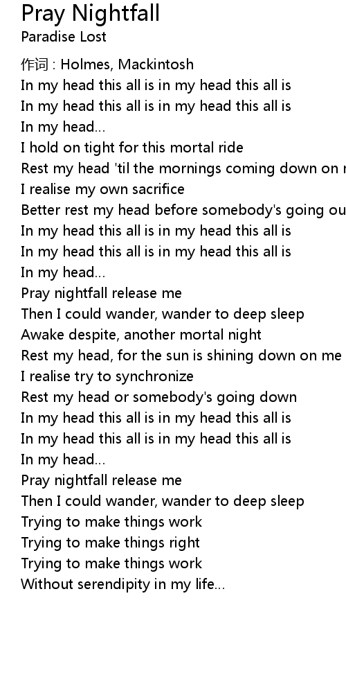 | Pray nightfall release me | |