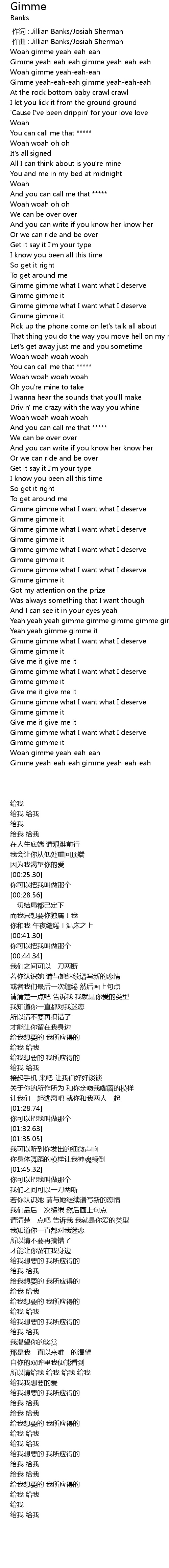 | [01:11.74] | Gimme gimme what I want what I deserve |