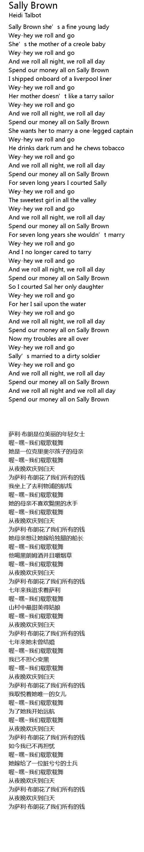 | [00:07.29] | Sally Brown she' s a fine young lady |