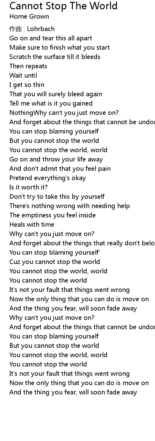 | Cuz you cannot stop the world | |