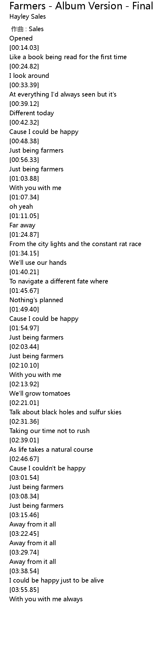 | [01:00.11] | Just being farmers |