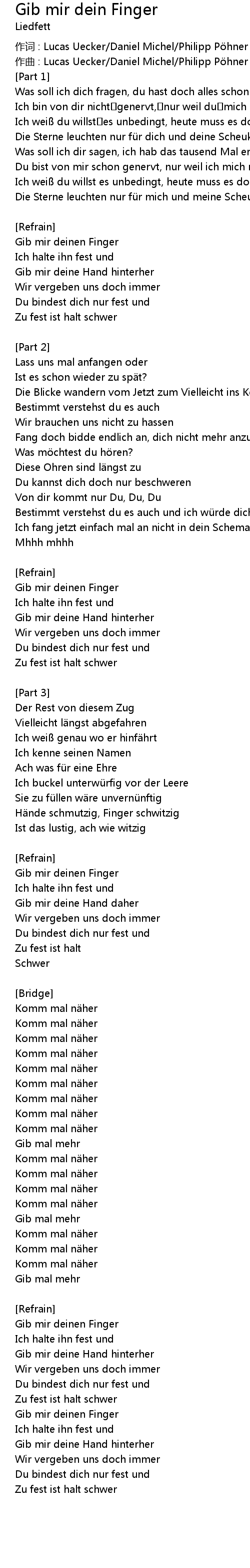 | 作词 : Lucas Uecker/Daniel Michel/Philipp Pöhner | |