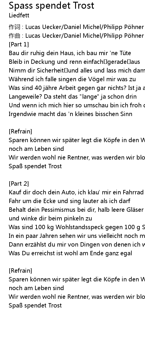 | Song | Spass spendet Trost |