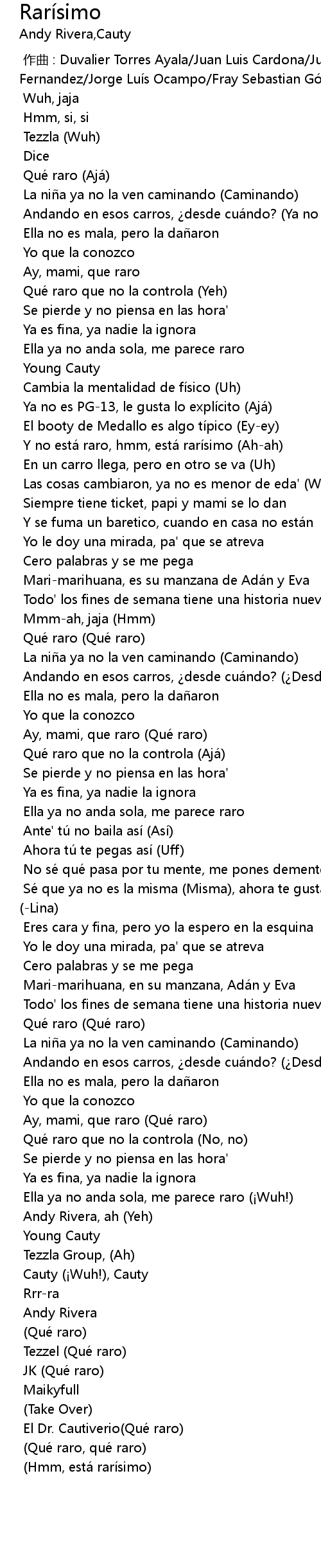 | [01:19.387] | Ay, mami, que raro Que raro |