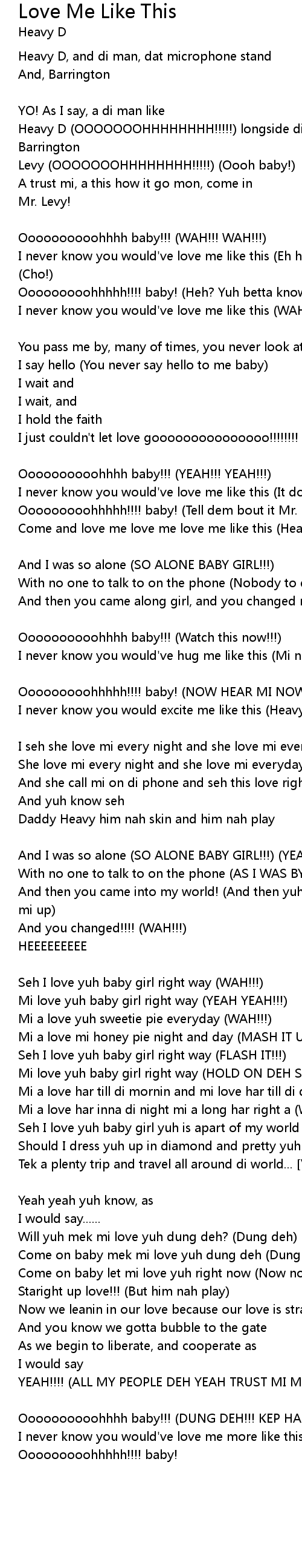 | I never know you would've love me like this (WAH!!! WAH!!! WAH!!!) [Verse 1: Barrington Levy (Heavy D)] | |