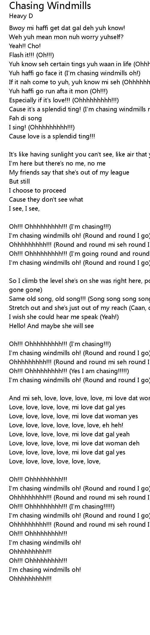 | Yuh haffi go face it (I'm chasing windmills oh!) | |