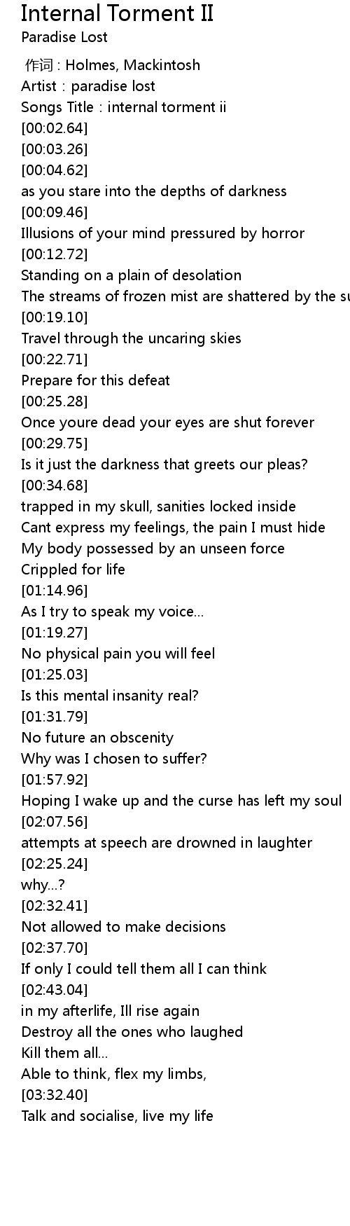 | [00:01.63] | Songs Title:internal torment ii |