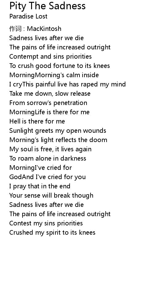| Song | Pity The Sadness |