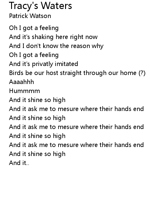 | Song | Tracy's Waters |