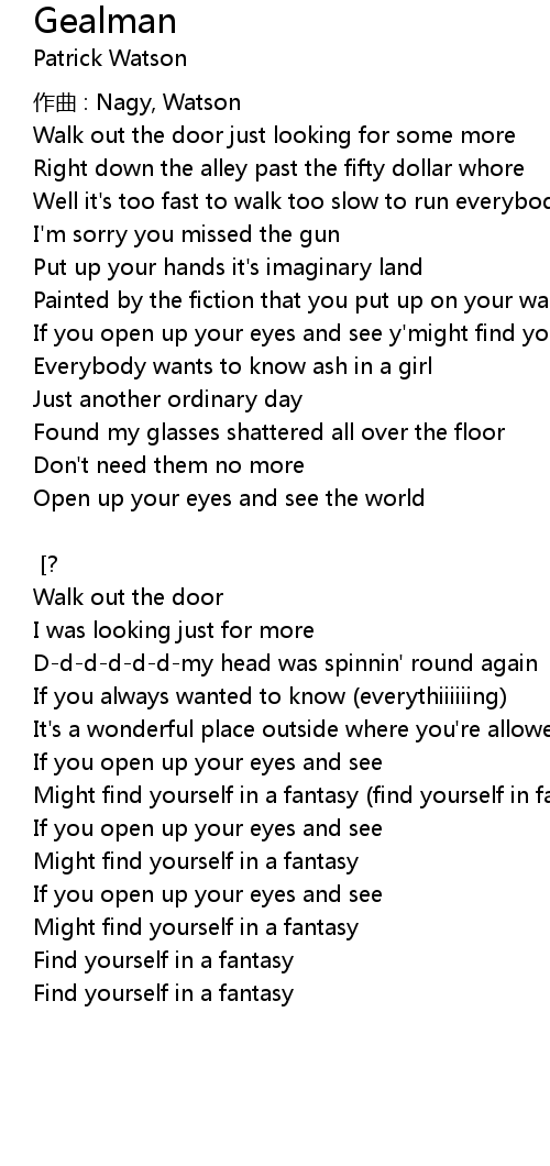 | If you open up your eyes and see y' might find yourself in a fantasy | |