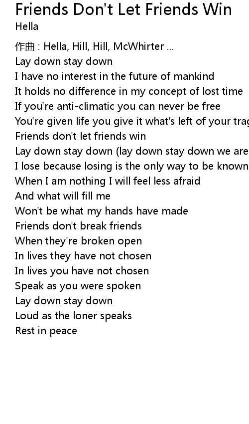 | Song | Friends Don't Let Friends Win |