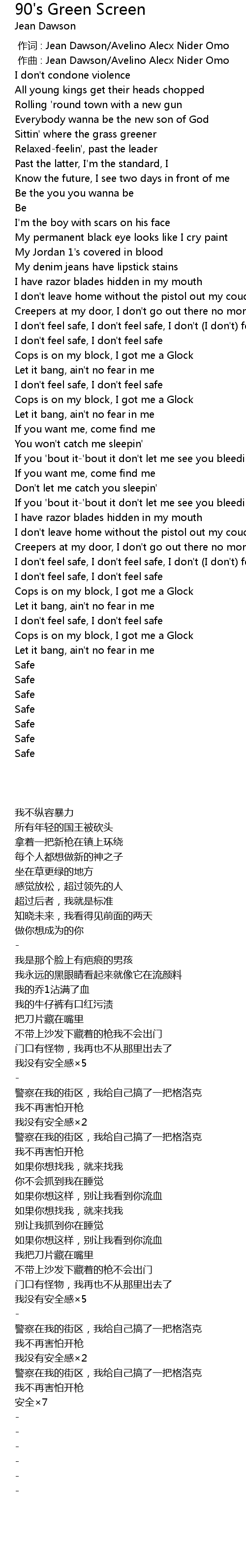 | [00:53.34] | I don' t feel safe, I don' t feel safe, I don' t I don' t feel safe |