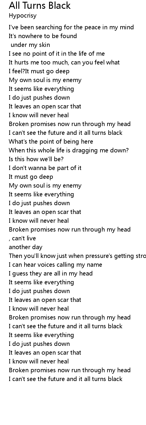I can't see the future and it all turns black[Incomprehensible], can't live another day |