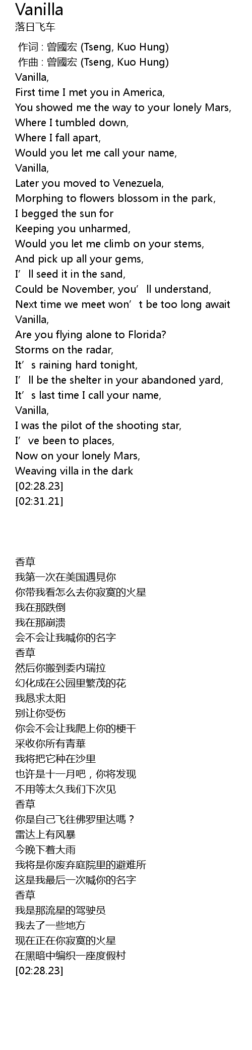 | [00:34.31] | Vanilla, |