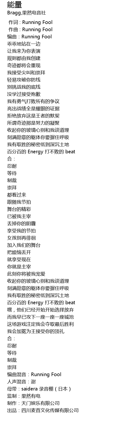 | [02:00.51] | bai fen bai de Energy da bu bai de beat |