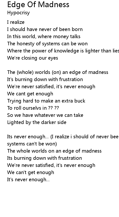 | Its never enough... (I realize i should of never been born) (The honesty of systems can't be won) | |