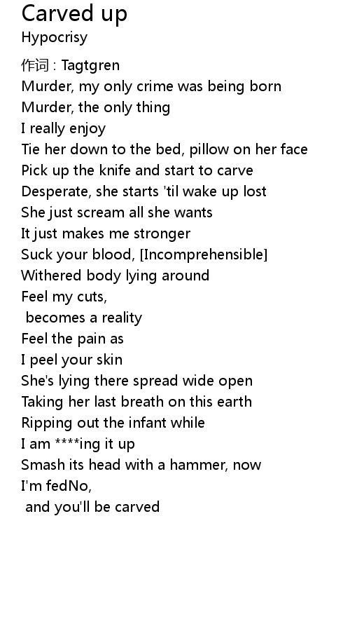 | I want no crying Incomprehensible and you' ll be carved |