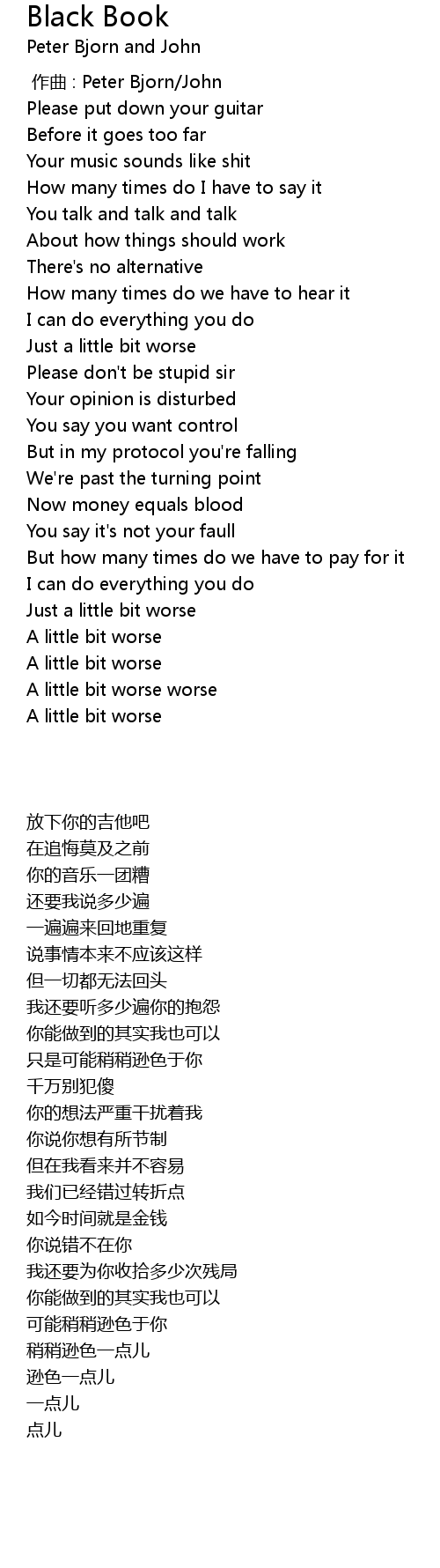 | [00:00.00] | zuo qu : Peter Bjorn John |