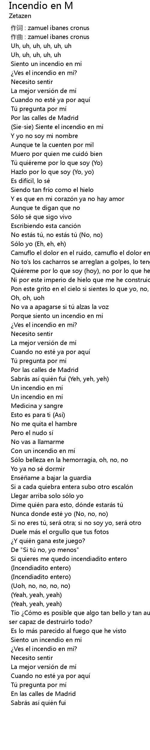 | [00:30.502] | Siesie Siente el incendio en mi |