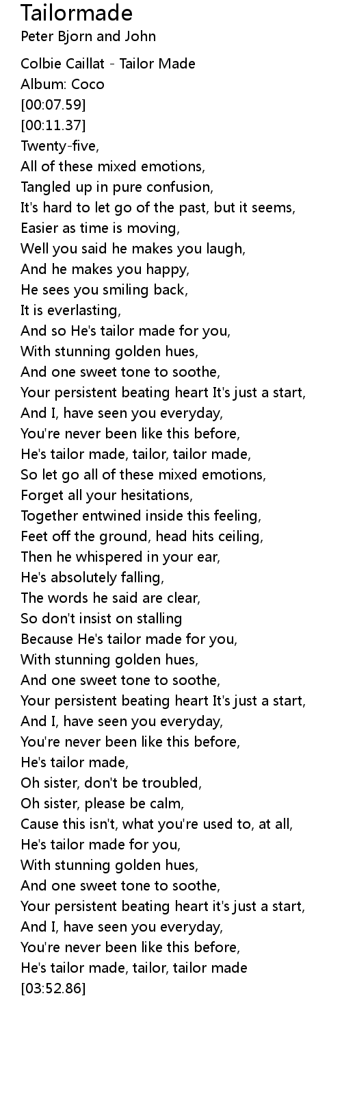 Tailormade Lyrics