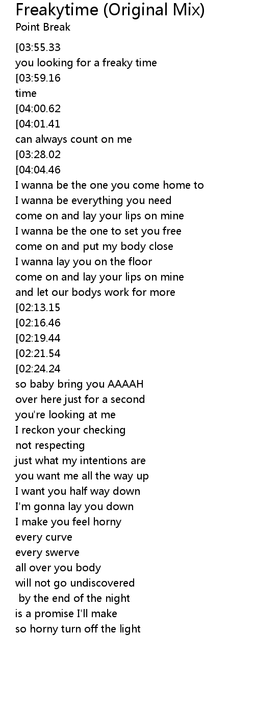 [04:07.49][03:55.33][03:43.29][03:31.15][03:19.12][02:36.70][02:24.64][01:36.28][01:24.24][00:23.71][00:11.66] If you looking for a freaky time