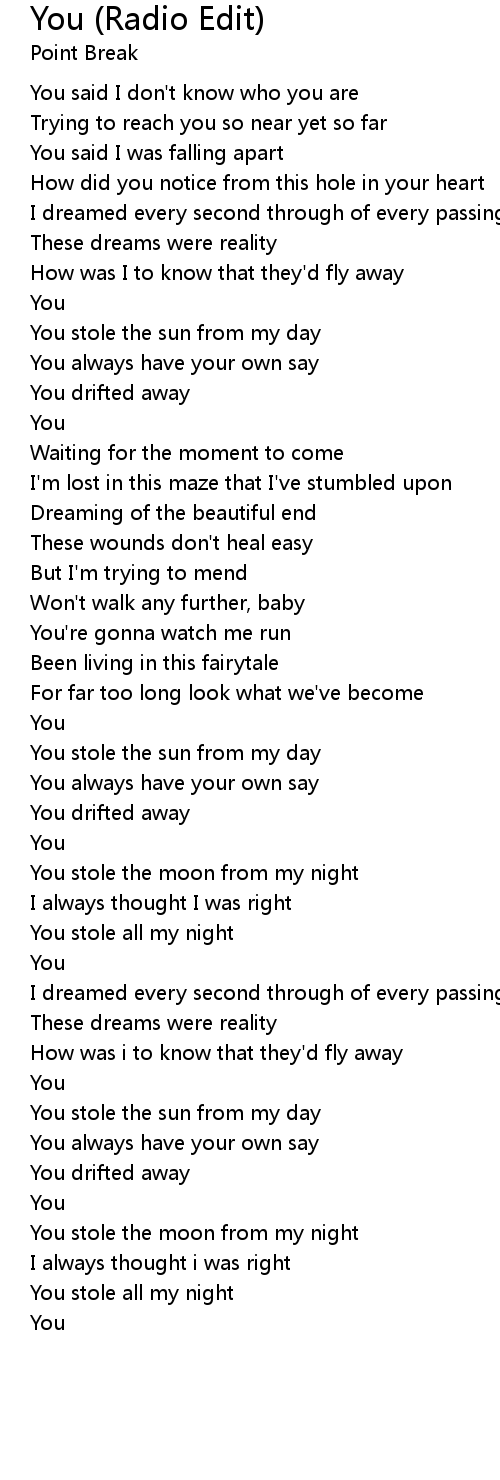 You stole the sun from my day |