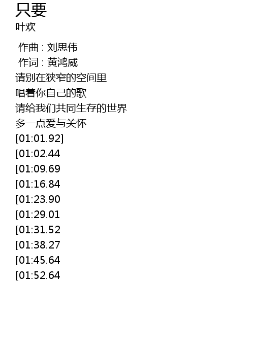 | [02:56.77][01:23.90] | 多一点温暖与希望 |