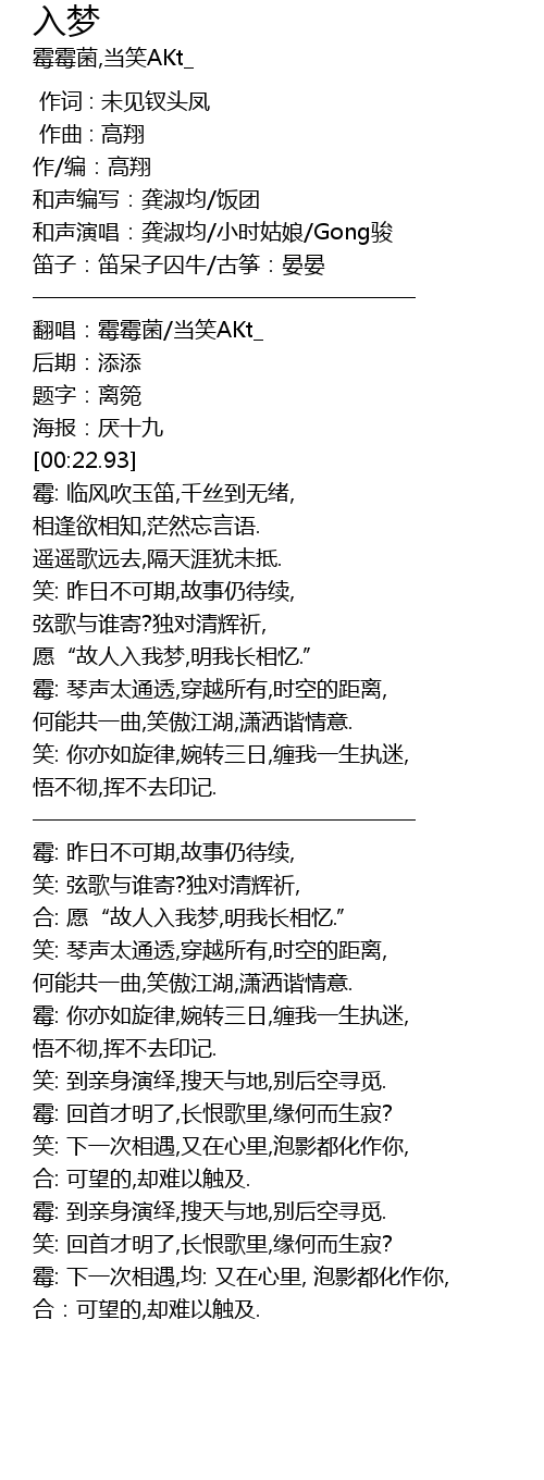 | [00:13.80] | 翻唱:霉霉菌/当笑AKt_ |