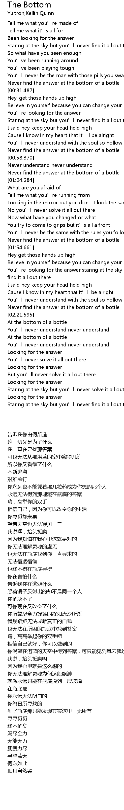 | [01:51.612] | Never find the answer at the bottom of a bottle |