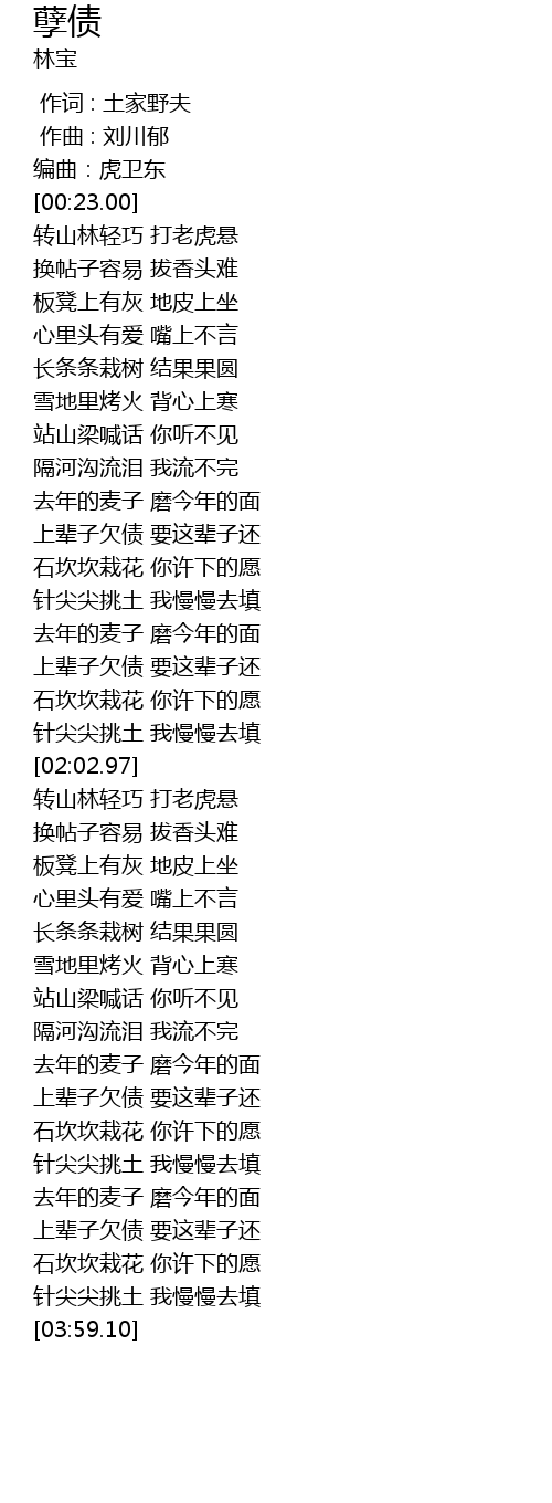 | [03:33.03] | 上辈子欠债 要这辈子还 |