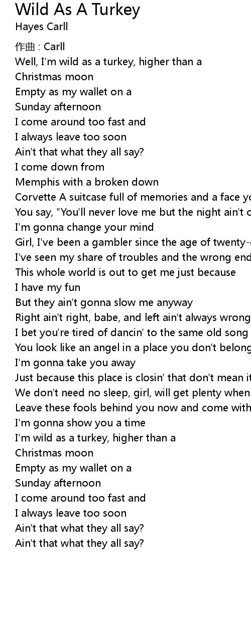| Song | Wild As A Turkey |