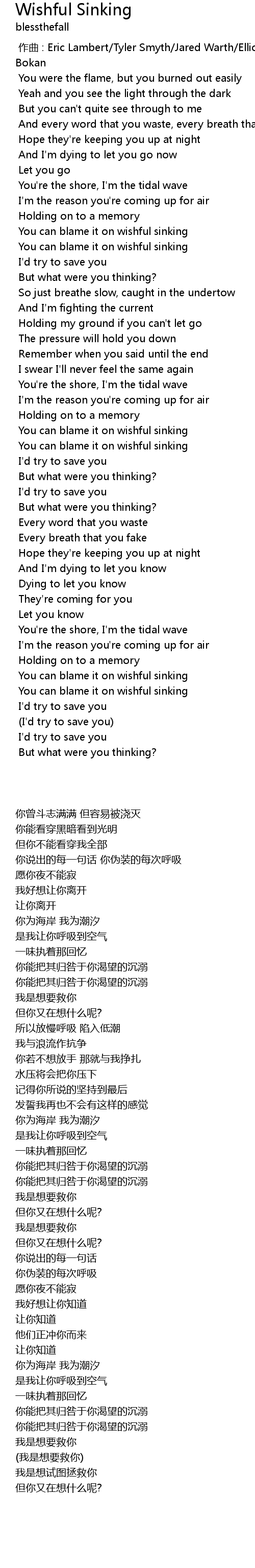 | [02:48.361] | You can blame it on wishful sinking |