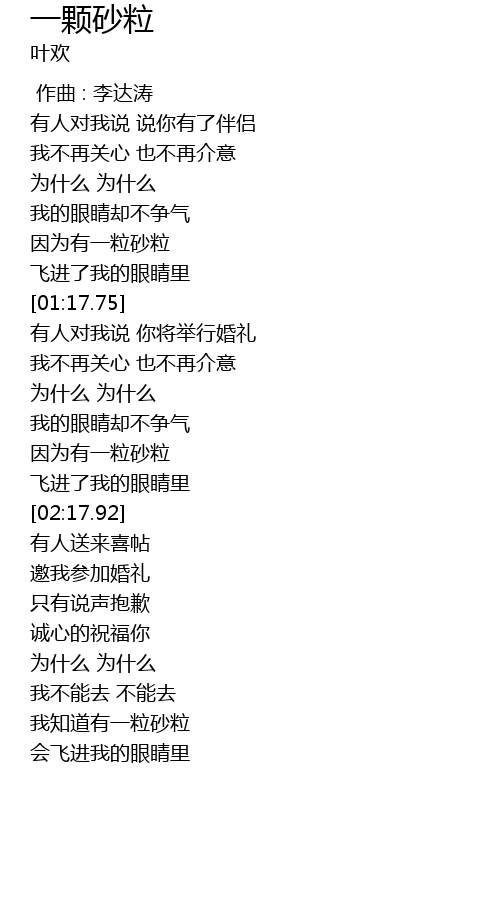 | [02:11.86] | fēi jìn le wǒ de yǎn jīng lǐ |