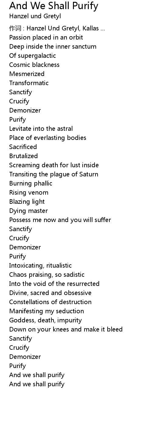 | 作词 : Hanzel Und Gretyl, Kallas ... | |
