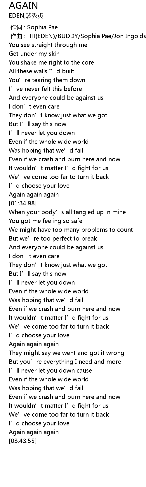 | [00:01.000] | zuò qǔ : EDEN BUDDY Sophia Pae Jon Ingoldsby |