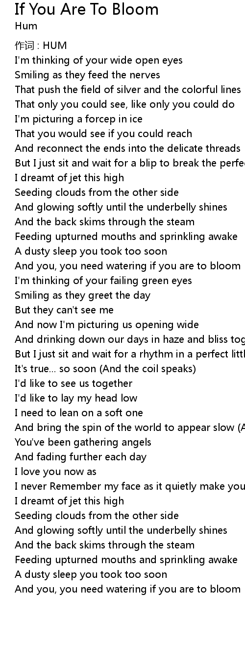 | Song | If You Are To Bloom |