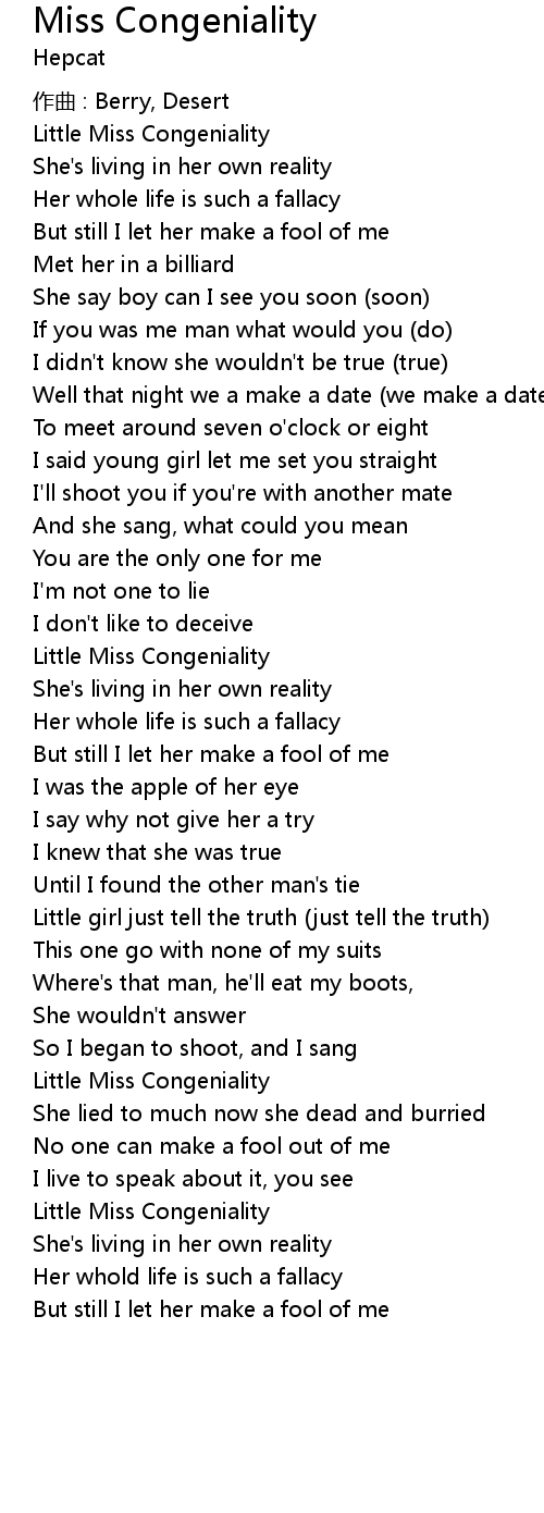 | Song | Miss Congeniality |