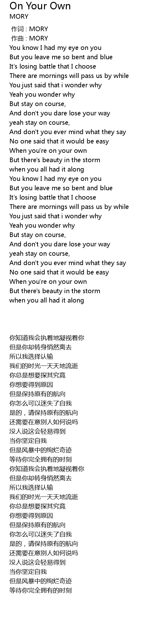 | [00:00.000] | 作词 : MORY |