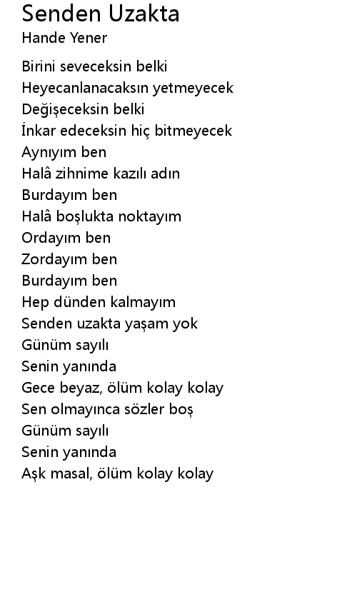 | Song | Senden Uzakta |
