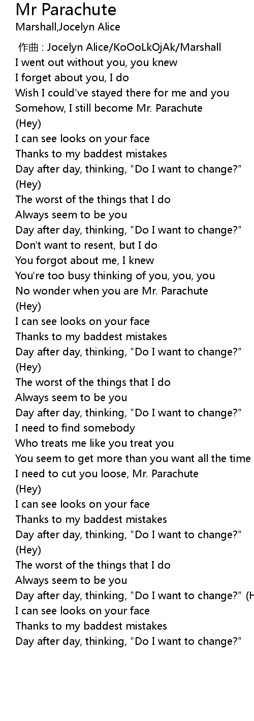 | [01:24.73] | No wonder when you are Mr. Parachute |