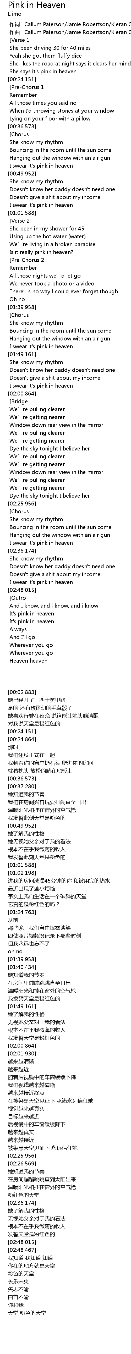 | [02:47.548] | I swear it' s pink in heaven |