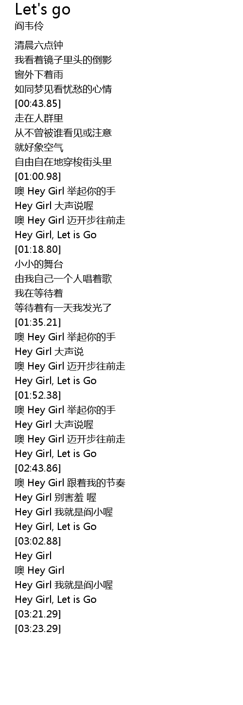 | [02:53.38] | Hey Girl 我就是阎小喔 |