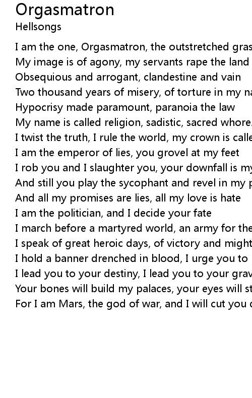 | I am the one, Orgasmatron, the outstretched grasping hand | |