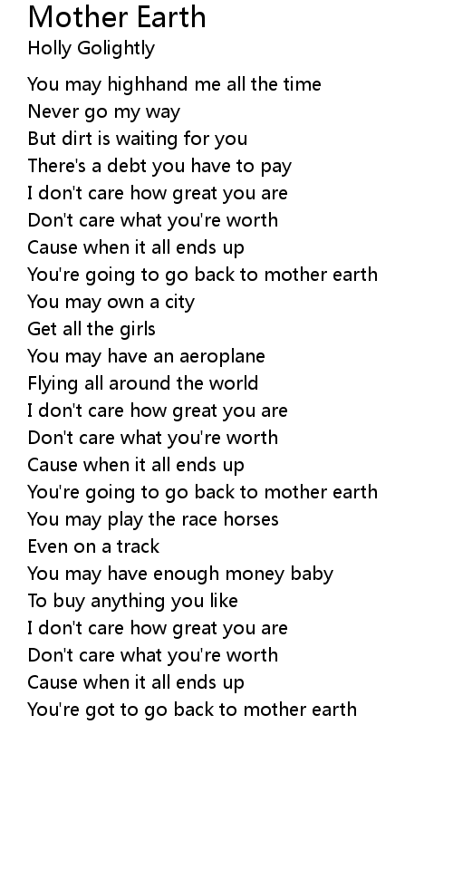 You're got to go back to mother earth |