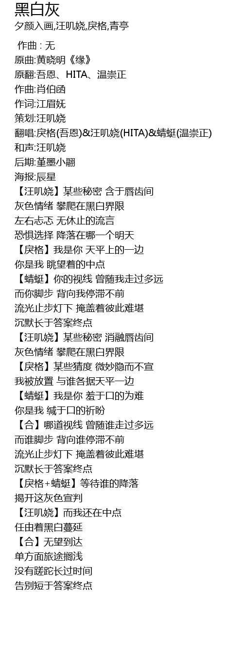 | [00:13.695] | 翻唱:戾格(吾恩)&汪叽娆(HITA)&蜻蜓(温崇正) |