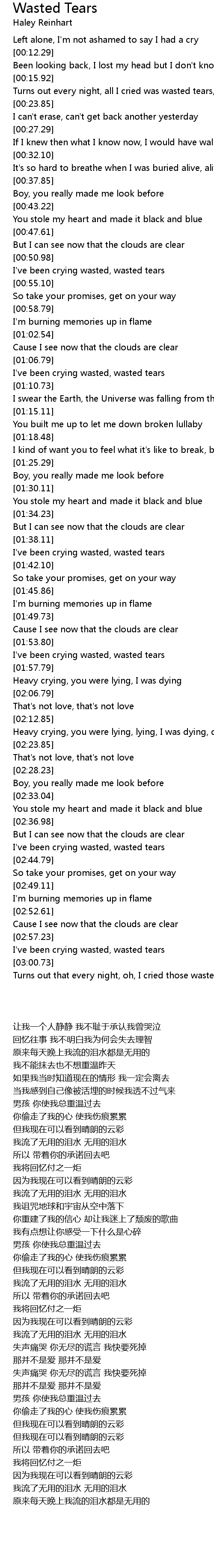 Turns out every night, all I cried was wasted tears, yeah |