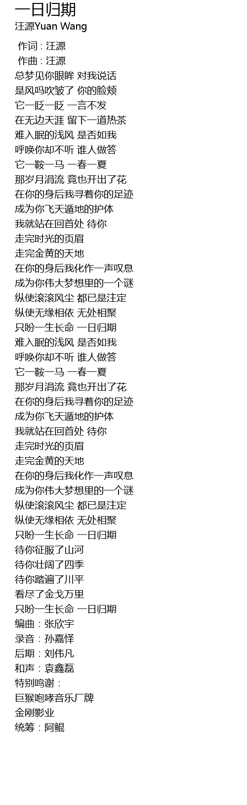 | Song | 一日归期 |