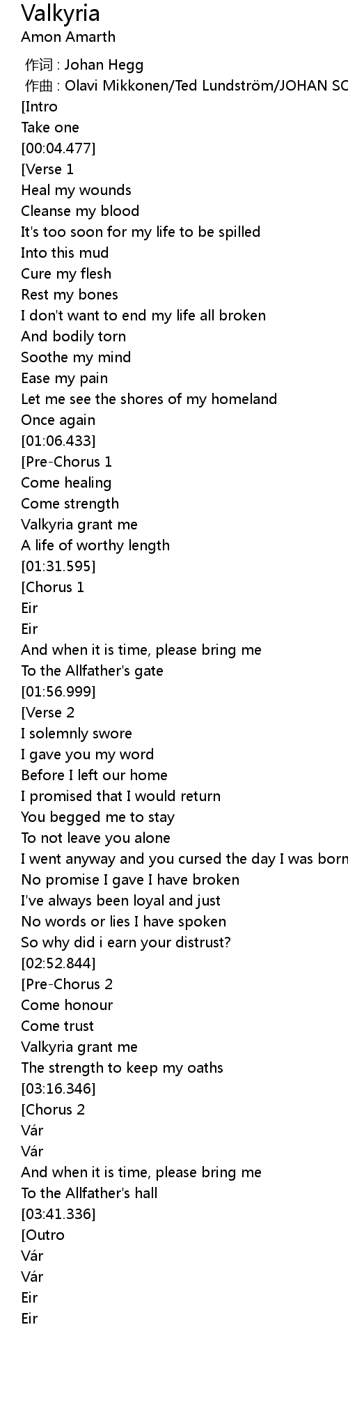 | [00:00.000] | 作词 : Johan Hegg |